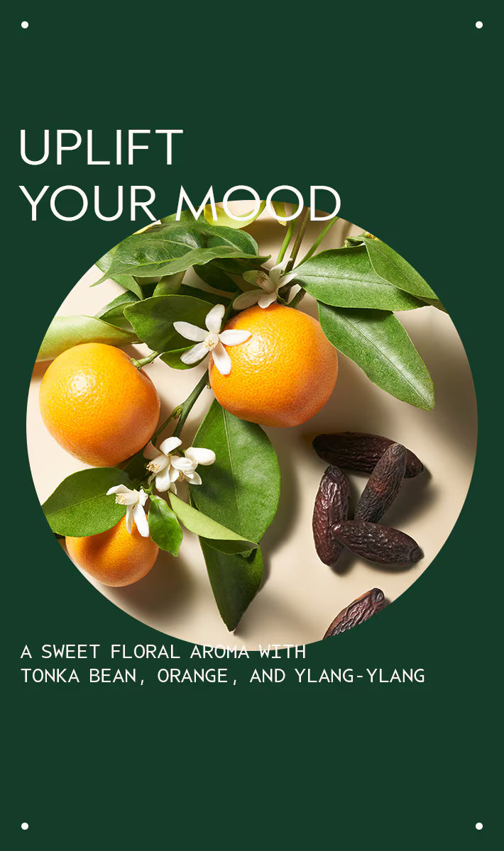 Sweet, juicy floral pure-fume™ aroma with 38 flower and plant essences including tonka bean, certified organic orange and ylang ylang.
