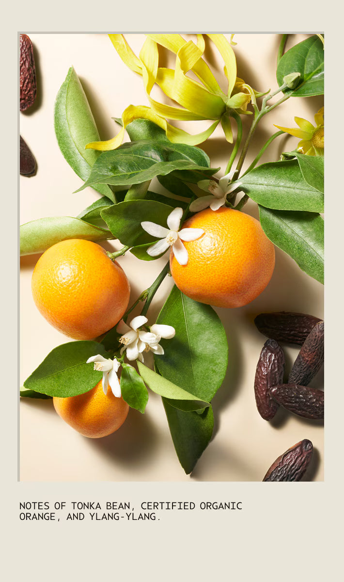 Infuses hair, with a sweet, juicy floral pure-fumeâ„¢ aroma containing 38 flower and plant essences including tonka bean, certified organic orange and ylang ylang.