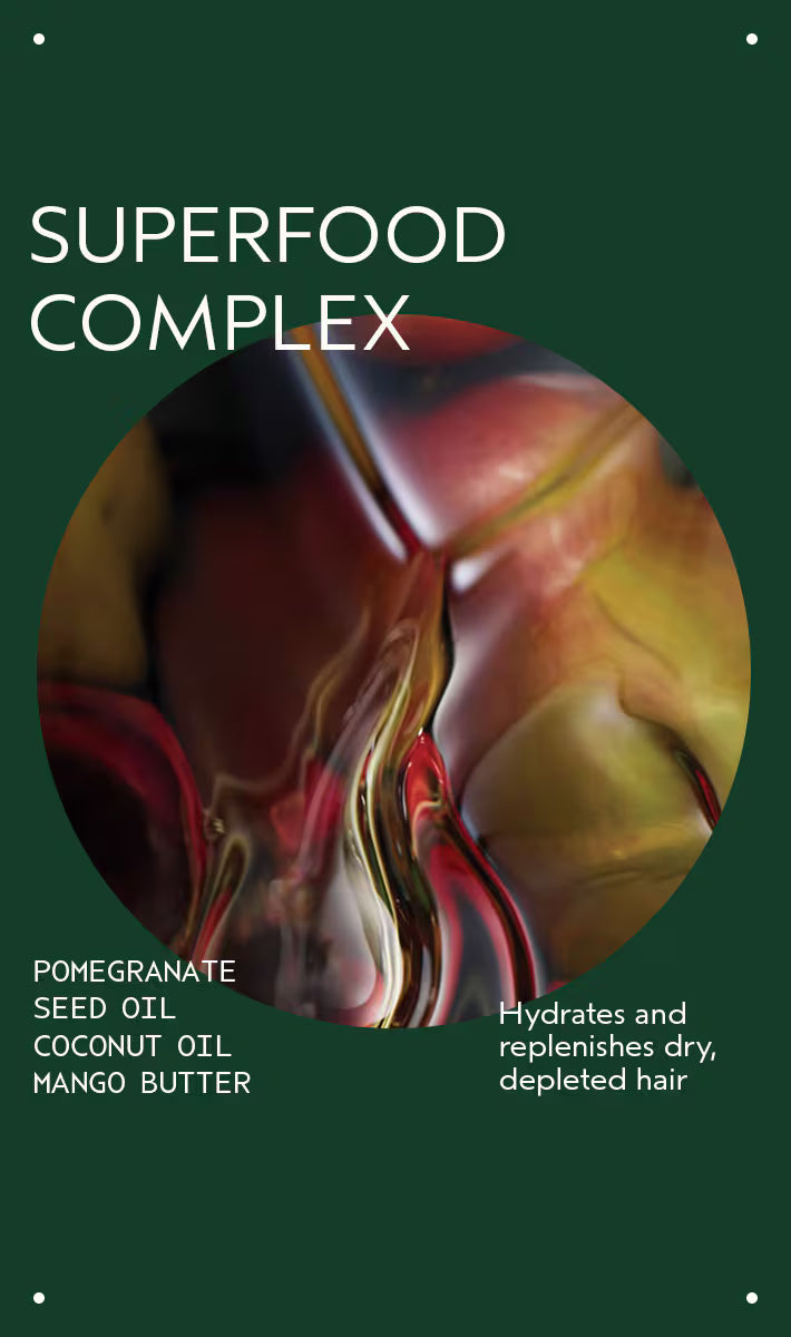 • luxurious omega-5 rich organic pomegranate oil nourishes dry, depleted hair