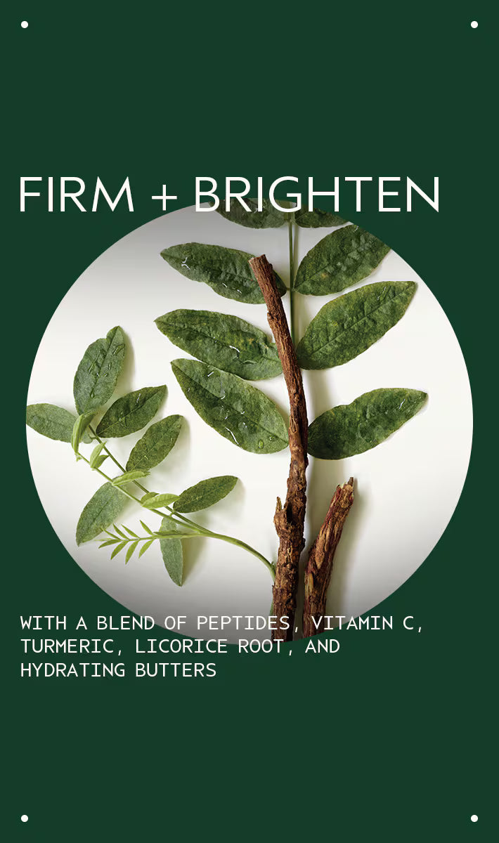 While you sleep, a powerful peptide and Vitamin C help boost skin's natural production of collagen for visibly lifted, firmer feeling skin. Turmeric and Licorice root extract help visibly brighten dull skin, while plant hydrators help deliver immediate moisture.